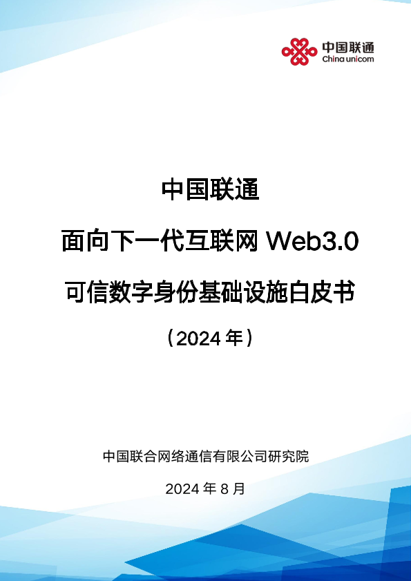 【中国联合网络通信有限公司研究院】【202408】中国联通面向下一代互联网Web3.0可信数字身份基础设施白皮书-53页