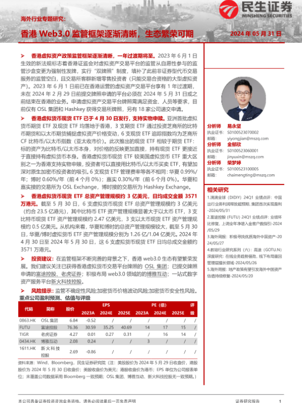 【民生证券】【20240531】海外行业专题研究-香港Web3.0监管框架逐渐清晰-生态繁荣可期-18页