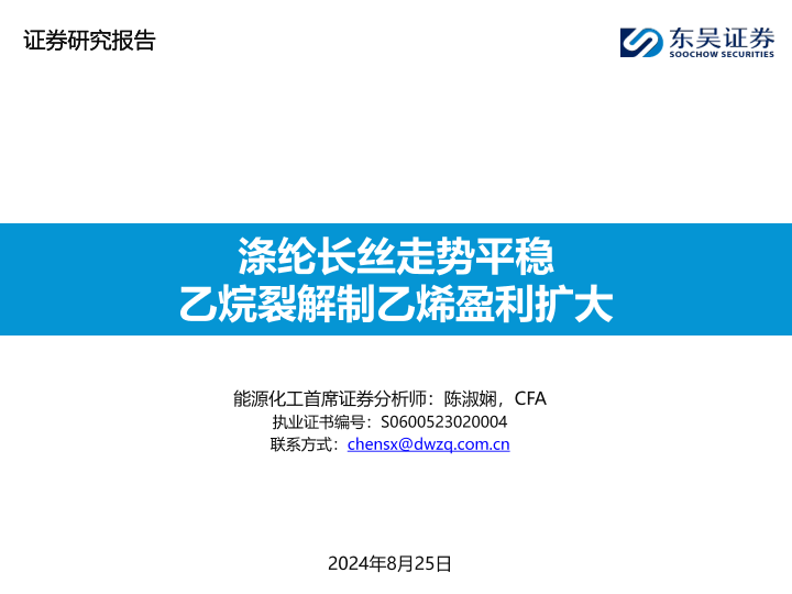 【东吴证券】【20240825】2024年09月07日更新-【东吴证券】能源化工行业:涤纶长丝走势平稳,乙烷裂解制乙烯盈利扩大-46页
