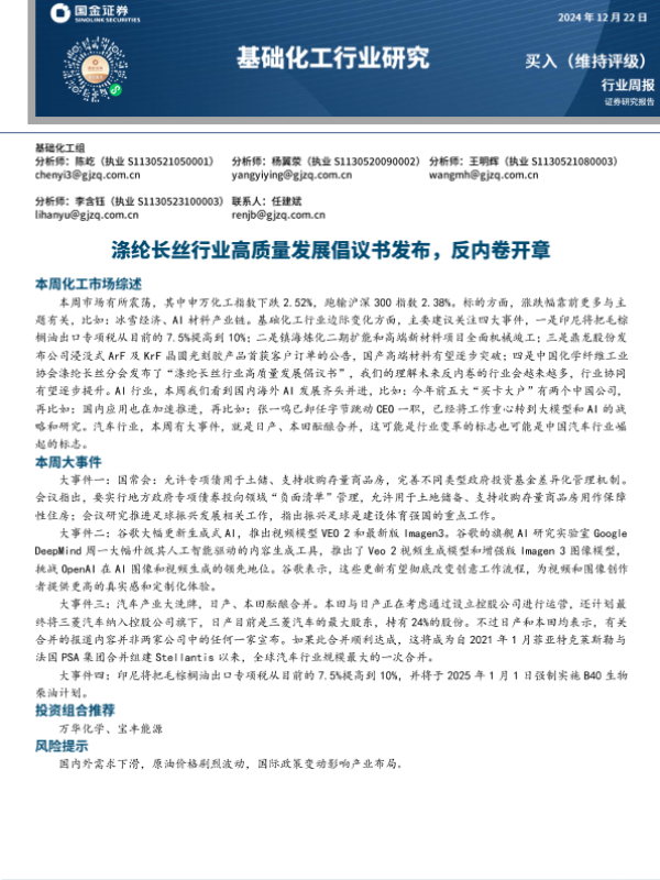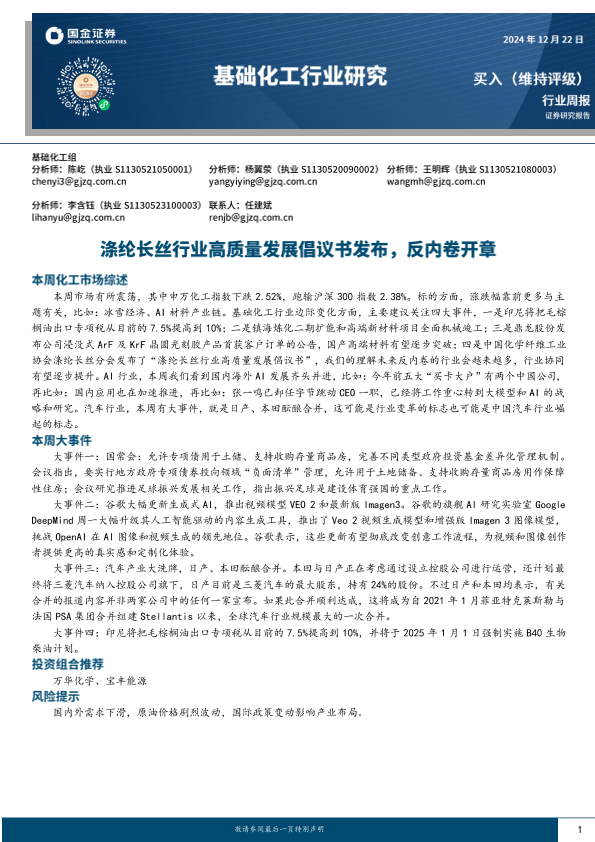 【国金证券】【20250217】基础化工行业研究:涤纶长丝行业高质量发展倡议书发布,反内卷开章-22页