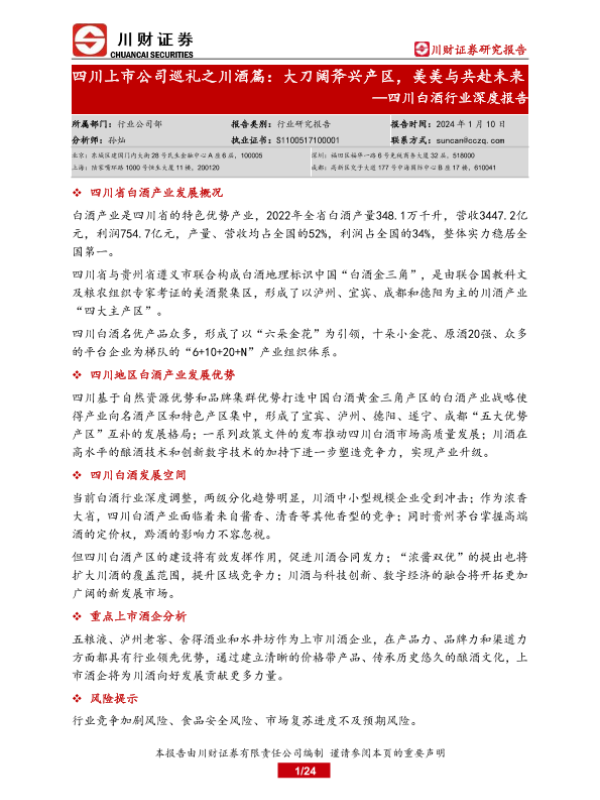 【川财证券】【20240110】四川上市公司巡礼之川酒篇:大刀阔斧兴产区,美美与共赴未来-24页