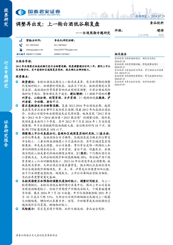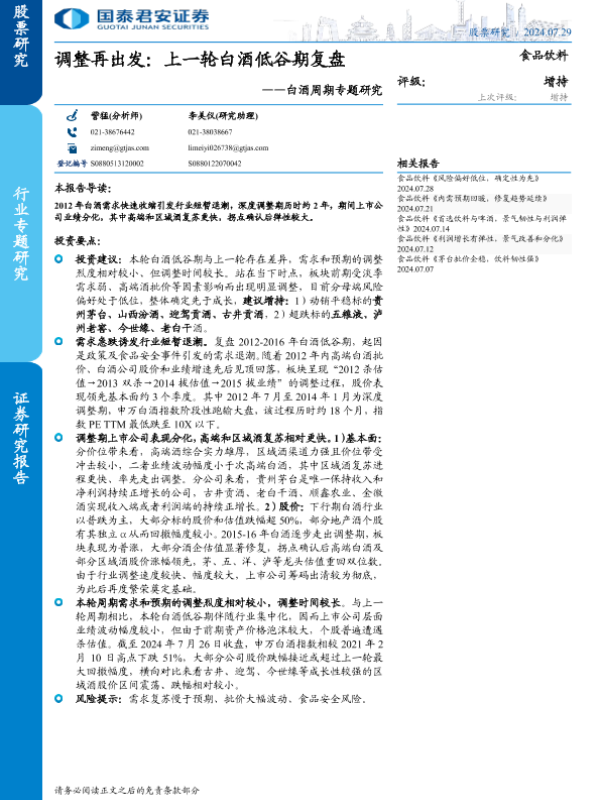 【国泰君安证券】【20240729】2024年11月05日更新-食品饮料行业白酒周期专题研究:调整再出发上一轮白酒低谷期复盘-16页