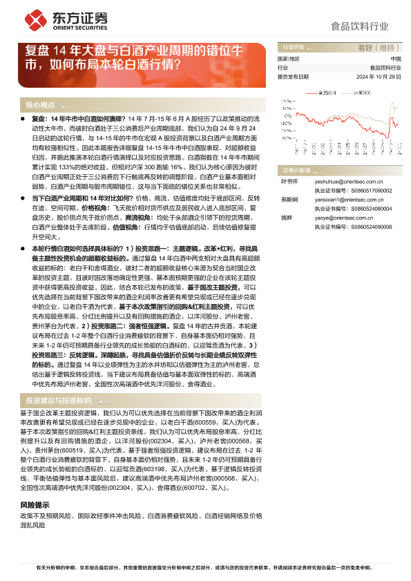 【东方证券】【20241029】食品饮料行业深度报告:复盘14年大盘与白酒产业周期的错位牛市,如何布局本轮白酒行情-21页