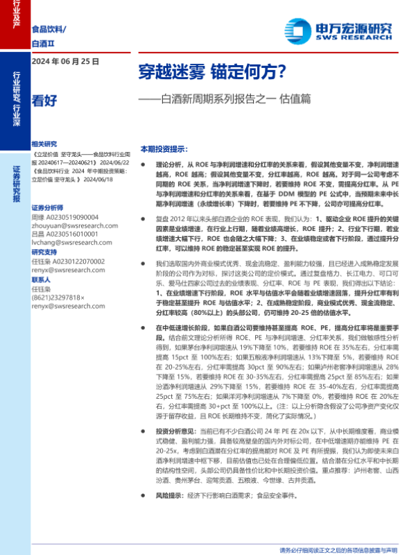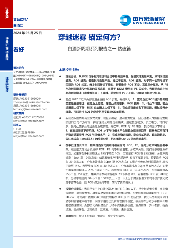 【申万宏源】【20240625】2024年11月13日更新-食品饮料行业白酒新周期系列报告之一估值篇:穿越迷雾锚定何方-15页