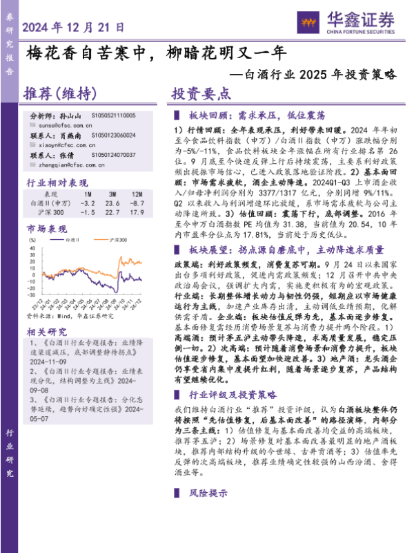 【华鑫证券】【20241231】2024年12月31日更新-【华鑫证券】白酒行业2025年投资策略:梅花香自苦寒中,柳暗花明又一年-34页