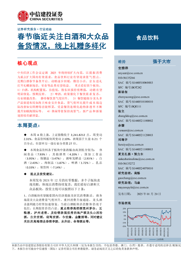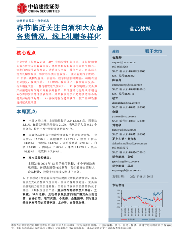 【中信建投证券】【20250120】食品饮料行业:春节临近关注白酒和大众品备货情况,线上礼赠多样化-18页