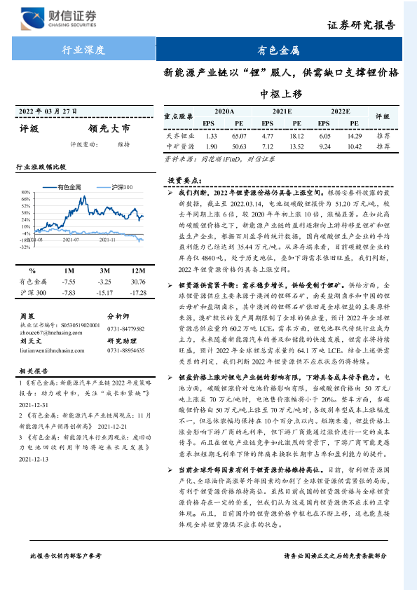 【财信证券】【20220327】新能源产业链以“锂”服人,供需缺口支撑锂价格中枢上移-28页