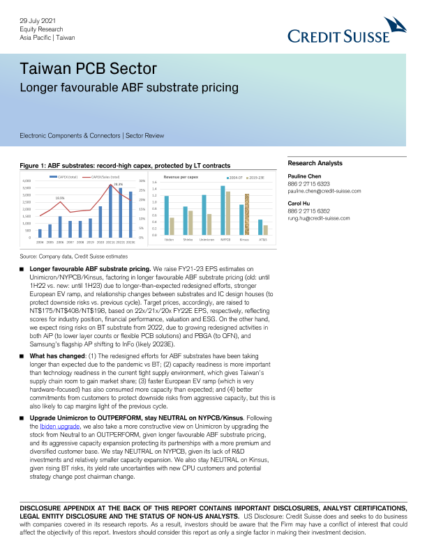 【瑞信】【20210729】台湾PCB行业:长期优惠ABF基板价格-34页
