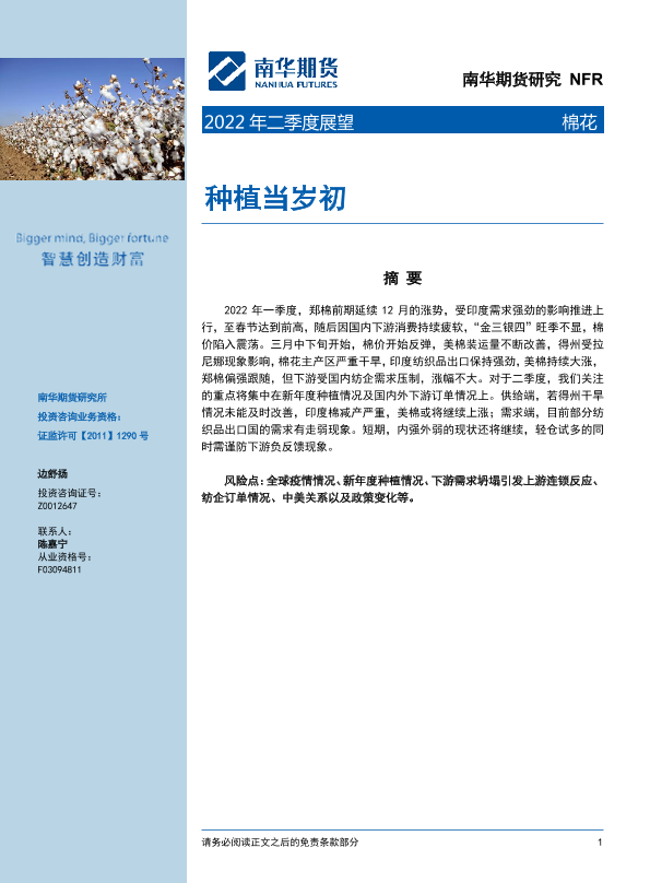 【南华期货】【20220401】棉花2022年二季度展望:种植当岁初-27页