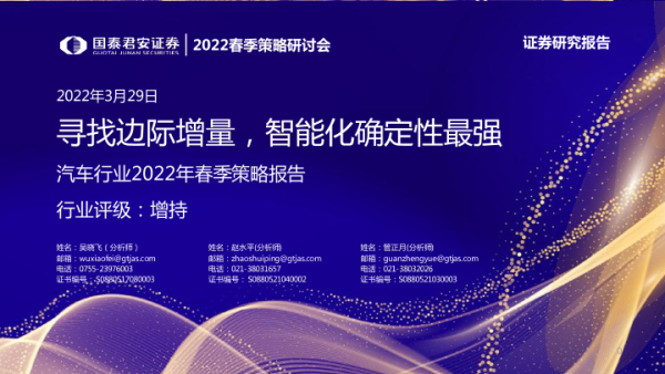 【国泰君安证券】【20220329】汽车行业2022年春季策略报告:寻找边际增量,智能化确定性最强-35页