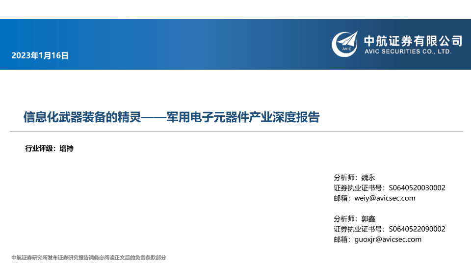 【中航证券】【20230116】信息化武器装备的精灵——军用电子元器件产业深度报告-42页