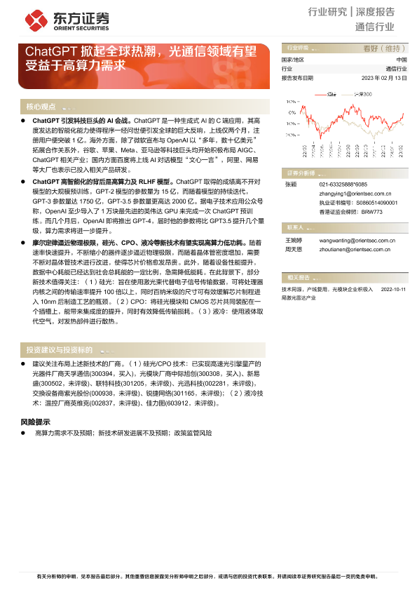 【东方证券】【20230213】通信行业深度报告-ChatGPT掀起全球热潮-光通信领域有望受益于高算力需求-15页