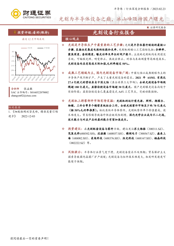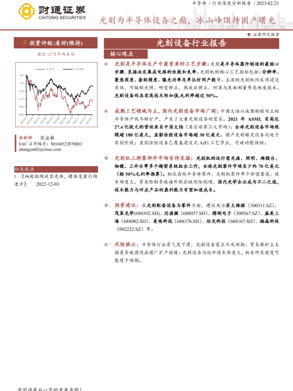 光刻设备 半导体 国产替代 行业分析 财通证券