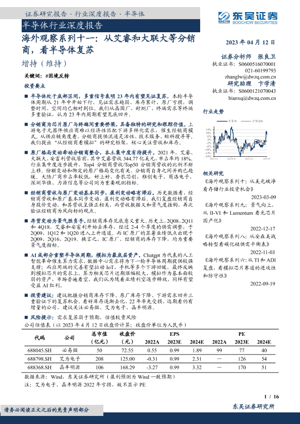【东吴证券】【20230412】2023年04月13日更新-【东吴证券】半导体行业深度报告-海外观察系列十一-从艾睿和大联大等分销商-看半导体复苏-16页