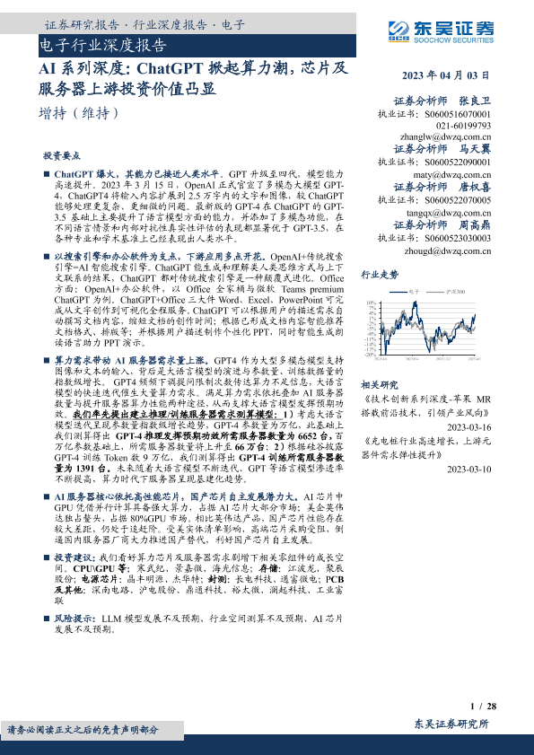 【东吴证券】【20230405】AI系列深度-ChatGPT掀起算力潮-芯片及服务器上游投资价值凸显-28页