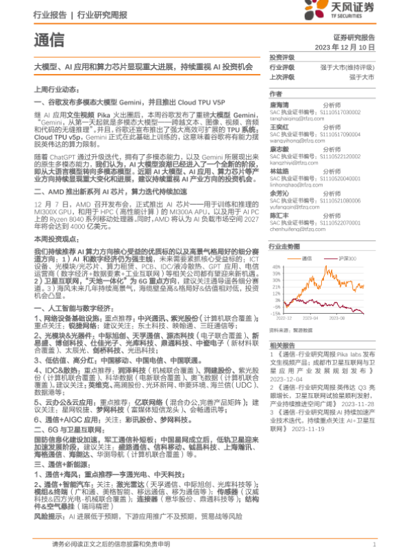 【天风证券】【20231210】2023年05月16日更新-通信行业:大模型、AI应用和算力芯片显现重大进展,持续重视AI投资机会-11页