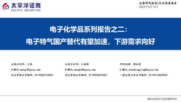【太平洋证券】【20230614】电子化学品系列报告之二:电子特气国产替代有望加速-下游需求向好-80页