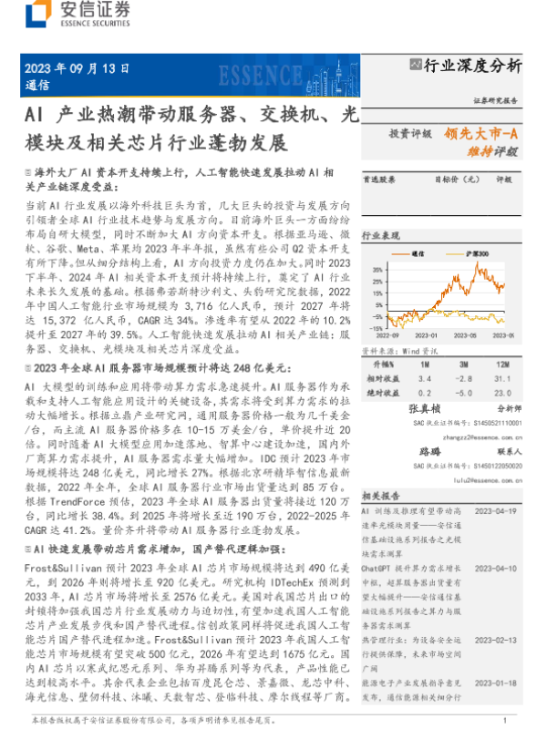 【安信证券】【20230914】通信行业深度分析-AI产业热潮带动服务器、交换机、光模块及相关芯片行业蓬勃发展-42页