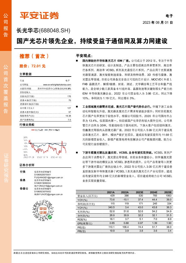 【平安证券】【20230801】国产光芯片领先企业,持续受益于通信网及算力网建设-20页