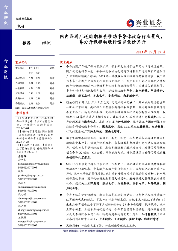 【兴业证券】【20231205】国内晶圆厂逆周期投资带动半导体设备行业景气,算力升级推动硬件需求量价齐升-9页