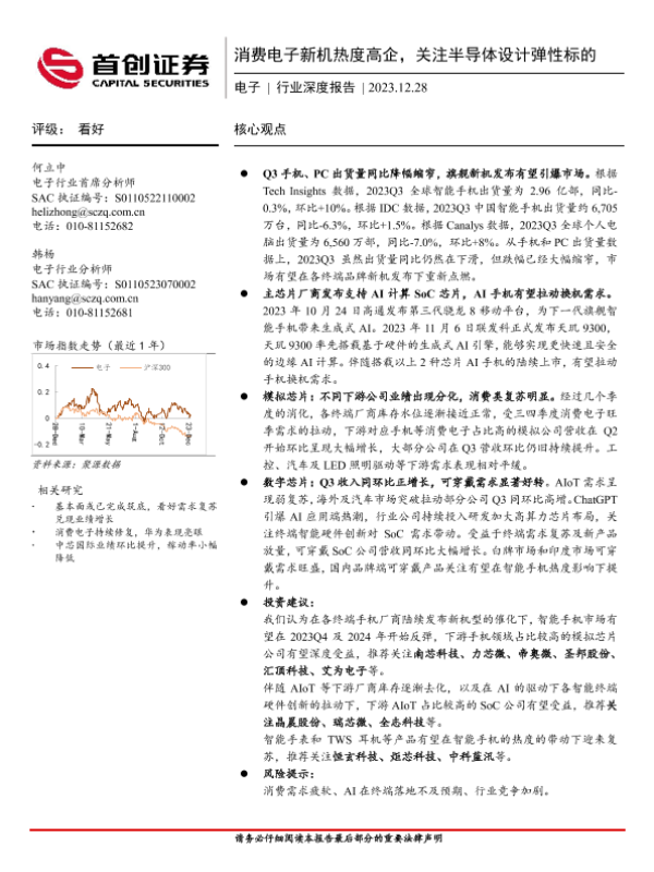 【首创证券】【20231228】消费电子新机热度高企,关注半导体设计弹性标的-23页