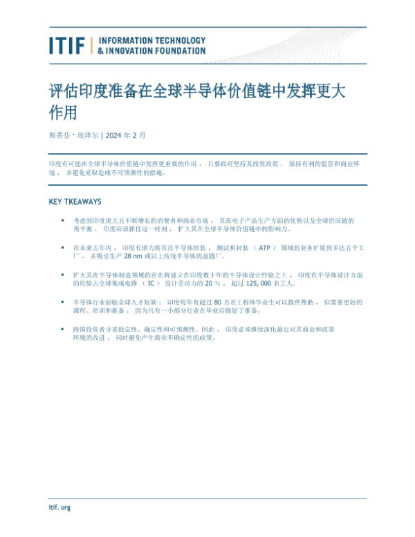 【信息技术与创新基金会 (ITIF)】【202402】评估印度准备在全球半导体价值链中发挥更大作用-53页