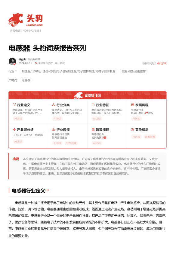 【头豹研究院】【20240304】2024年03月04日更新-【头豹研究院】电感器 头豹词条报告系列-20页