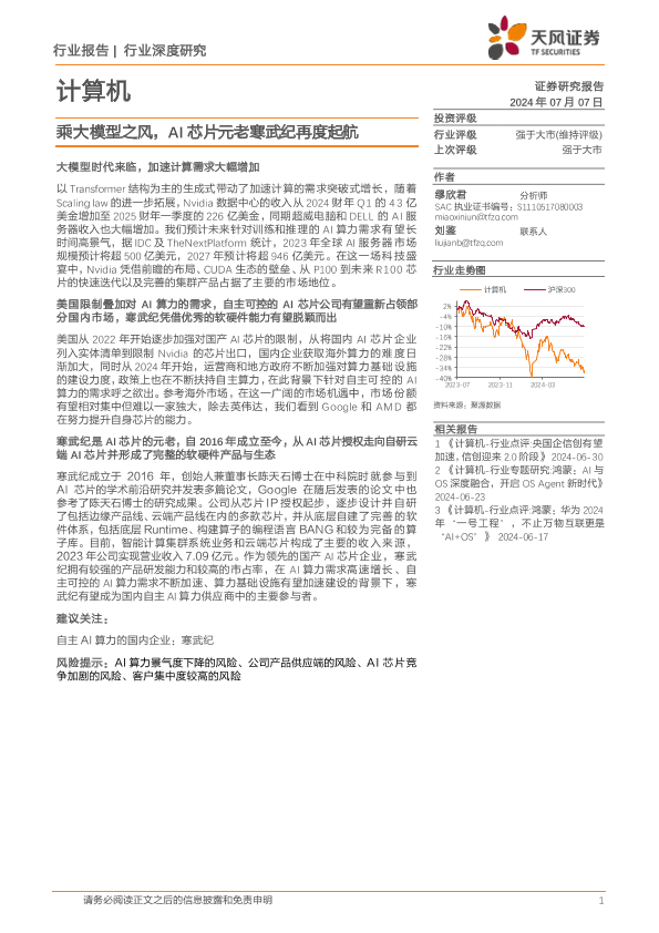 【天风证券】【20240708】计算机行业深度研究-乘大模型之风-AI芯片元老寒武纪再度起航-30页