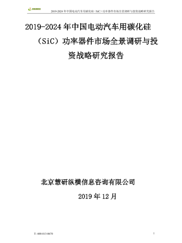 【北京慧研纵横信息咨询有限公司】【201912】2019-2024年中国电动汽车用碳化硅(SiC)功率器件市场全景调研与投资战略研究报告-488页