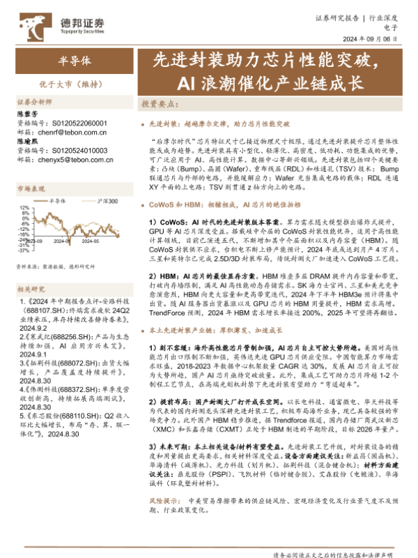 【德邦证券】【20240906】2024年09月09日更新-半导体行业:先进封装助力芯片性能突破AI浪潮催化产业链成长-240906-46页