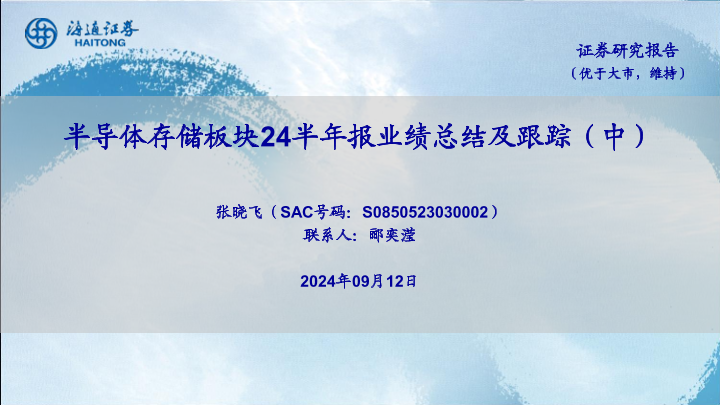 【海通证券】【20240912】2024年09月13日更新-半导体行业:半导体存储板块24半年报业绩总结及跟踪(中)-21页