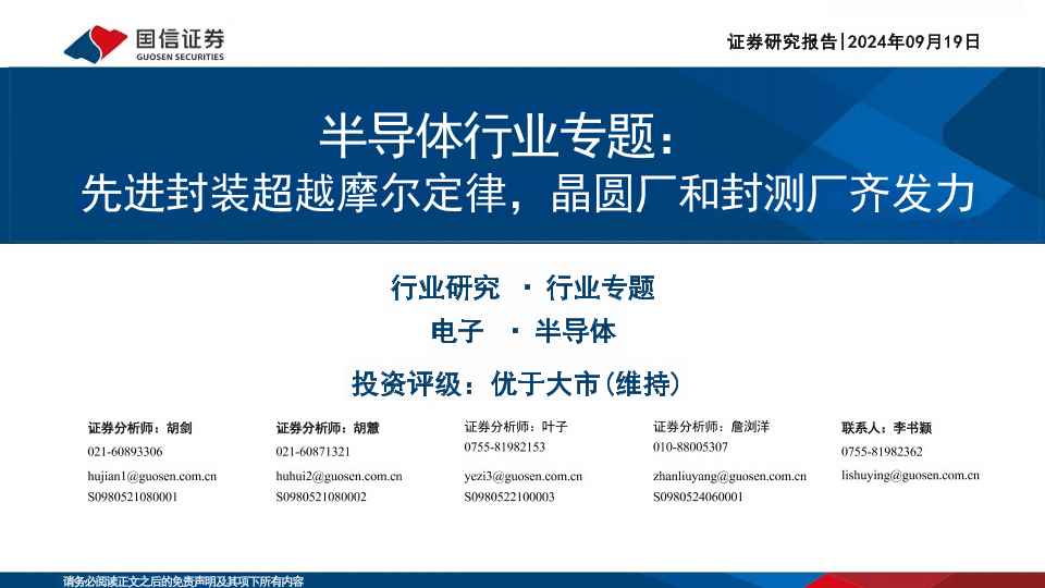 【国信证券】【20240919】2024年09月20日更新-半导体行业专题:先进封装超越摩尔定律晶圆厂和封测厂齐发力-45页