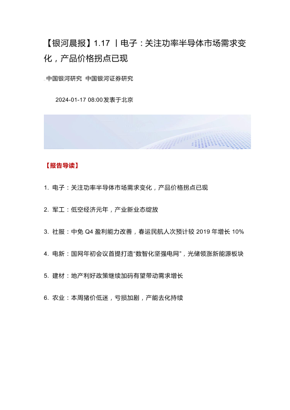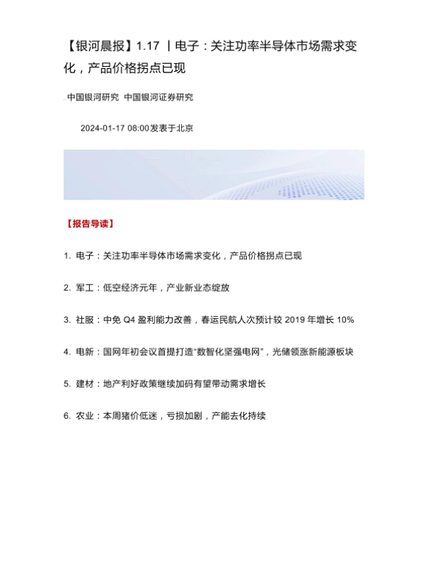 【银河证券】【20240117】电子:关注功率半导体市场需求变化,产品价格拐点已现-31页