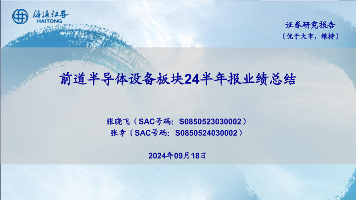 【海通证券】【20240918】前道半导体设备板块24半年报业绩总结-22页