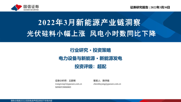 【国信证券】【20220330】电力设备与新能源行业2022年3月新能源产业链洞察:光伏硅料小幅上涨,风电小时数同比下降-19页
