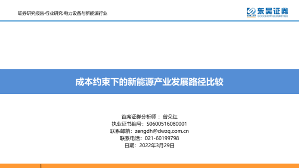【东吴证券】【20220329】电力设备与新能源行业:成本约束下的新能源产业发展路径比较-56页