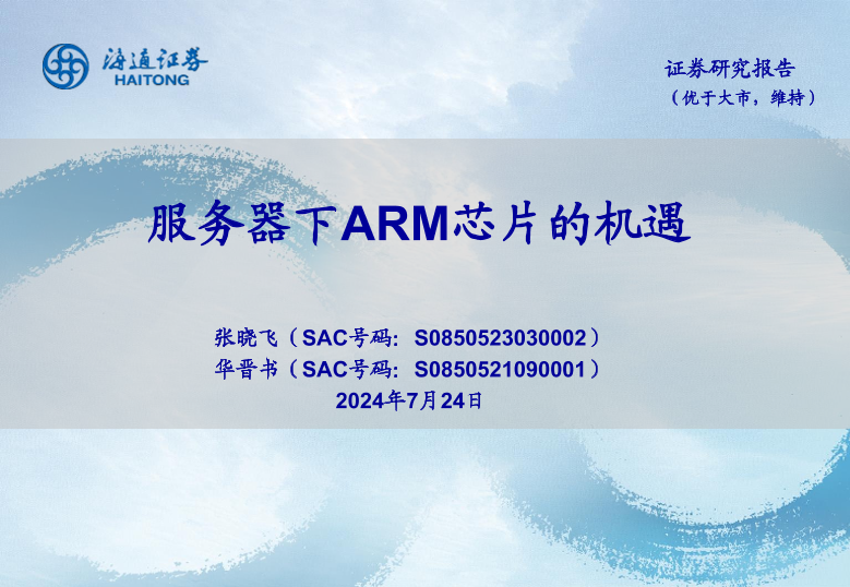 【海通证券】【20240724】2024年10月18日更新-电子行业:服务器下ARM芯片的机遇-26页