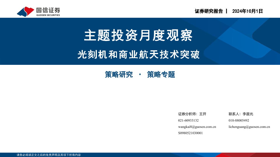 【国信证券】【20241021】主题投资月度观察:光刻机和商业航天技术突破-23页