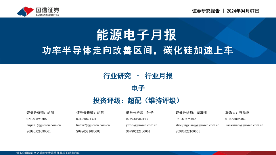 【国信证券】【20240407】能源电子月报:功率半导体走向改善区间,碳化硅加速上车-25页