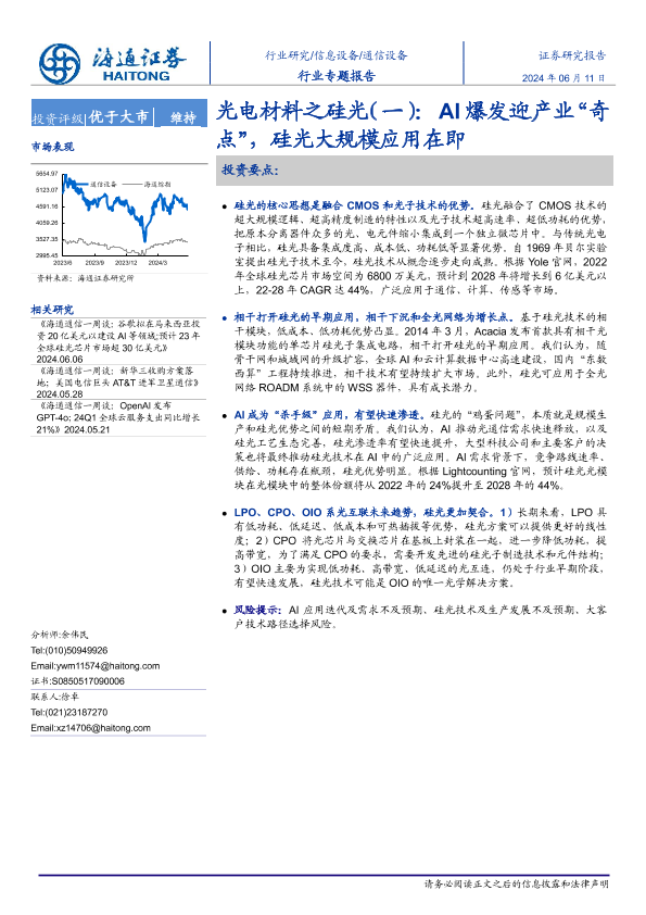 【海通证券】【20240611】通信设备行业光电材料之硅光(一):AI爆发迎产业“奇点”硅光大规模应用在即-24页