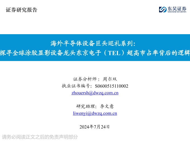 【东吴证券】【20240724】2024年11月25日更新-海外半导体设备行业巨头巡礼系列:探寻全球涂胶显影设备龙头东京电子(TEL)超高市占率背后的逻辑-51页