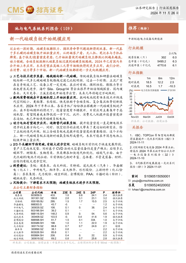 【海通证券】【20241126】2024年11月28日更新-电池与电气系统系列报告(109):新一代硅碳负极开始规模应用-16页