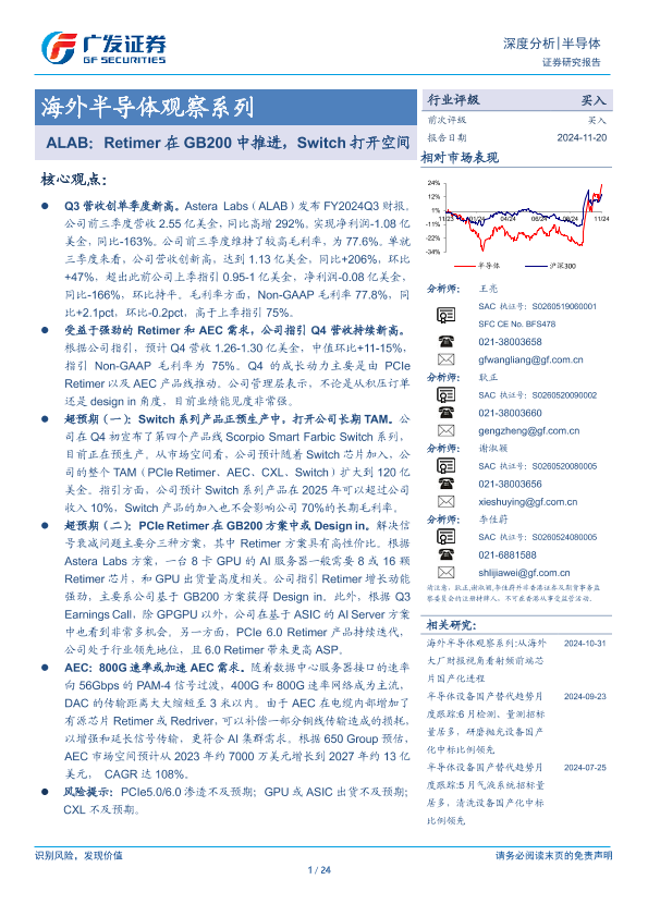 【广发证券】【20241120】海外半导体行业观察系列:ALAB,Retimer在GB200中推进,Switch打开空间-24页