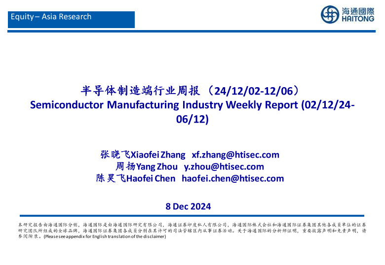 【海通国际】【20241214】2024年12月14日更新-【海通国际】半导体制造端行业周报-22页