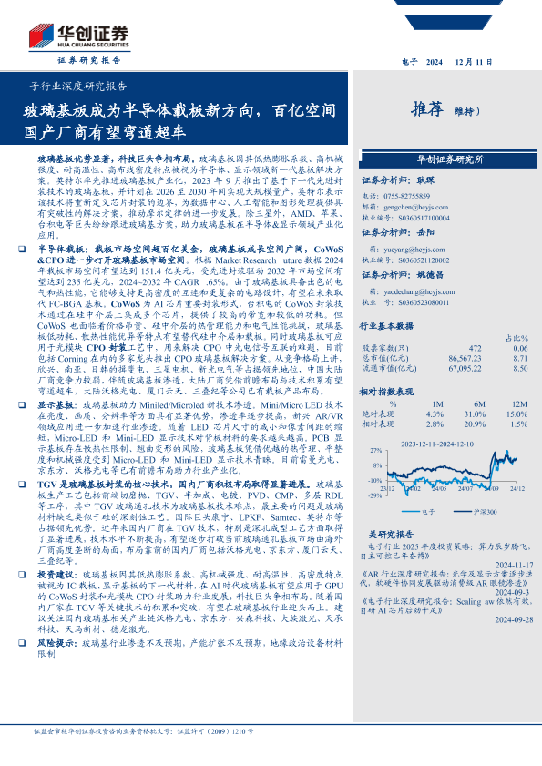 【华创证券】【20241211】2024年12月17日更新-电子行业深度研究报告:玻璃基板成为半导体载板新方向百亿空间国产厂商有望弯道超车-23页