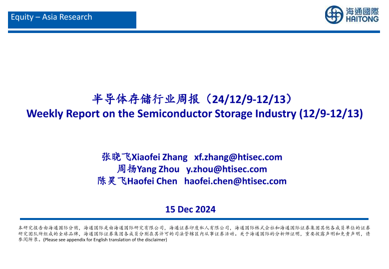 【海通国际】【20241219】2024年12月19日更新-【海通国际】半导体存储行业周报-22页