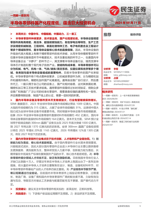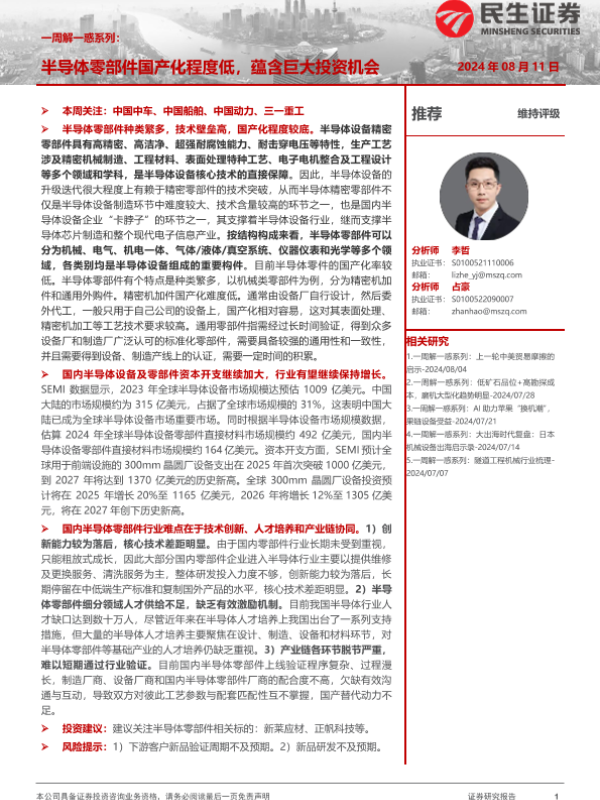 【民生证券】【20241225】半导体零部件一周解一惑系列:半导体零部件国产化程度低,蕴含巨大投资机会-19页