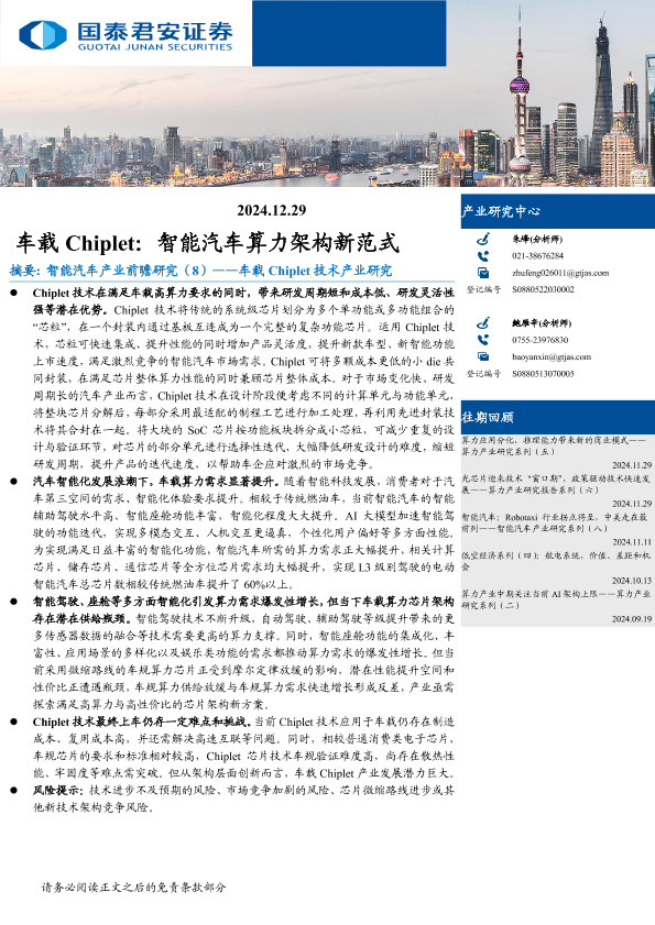 【国泰君安证券】【20250108】车载Chiplet,智能汽车算力架构新范式-24页