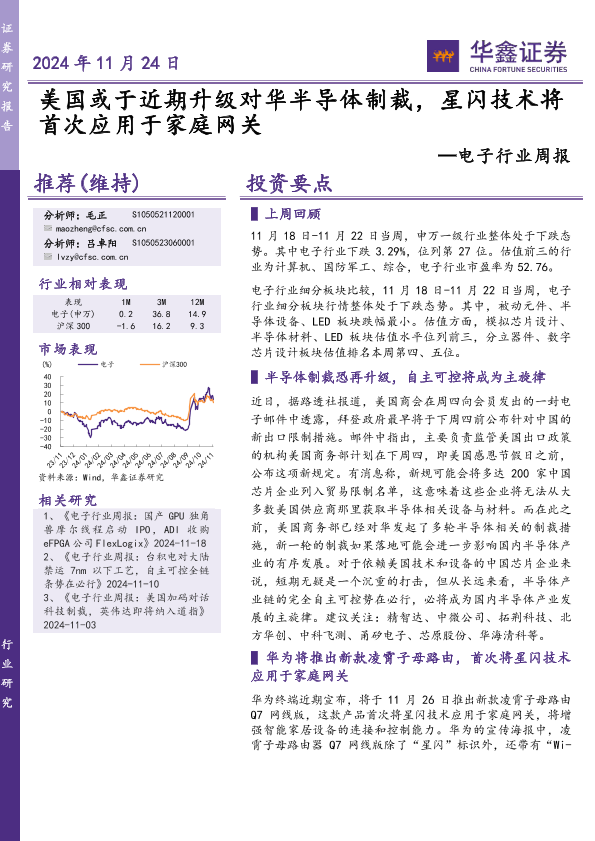 【华鑫证券】【20250106】电子行业周报:美国或于近期升级对华半导体制裁,星闪技术将首次应用于家庭网关-36页