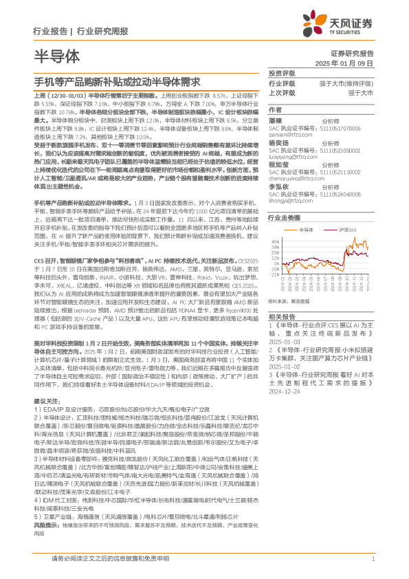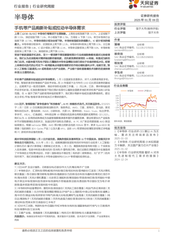 【天风证券】【20250109】2025年01月12日更新-【天风证券】半导体行业研究周报:手机等产品购新补贴或拉动半导体需求-32页